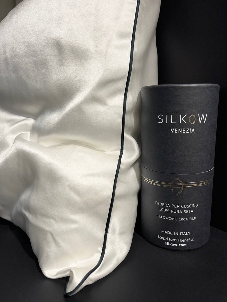 Federa per cuscino 100% in raso pura seta. Prodotto Made in Italy sottoposto a termo fissaggio per mantenere morbidezza e struttura anche in lavatrice dopo numerosi lavaggi.