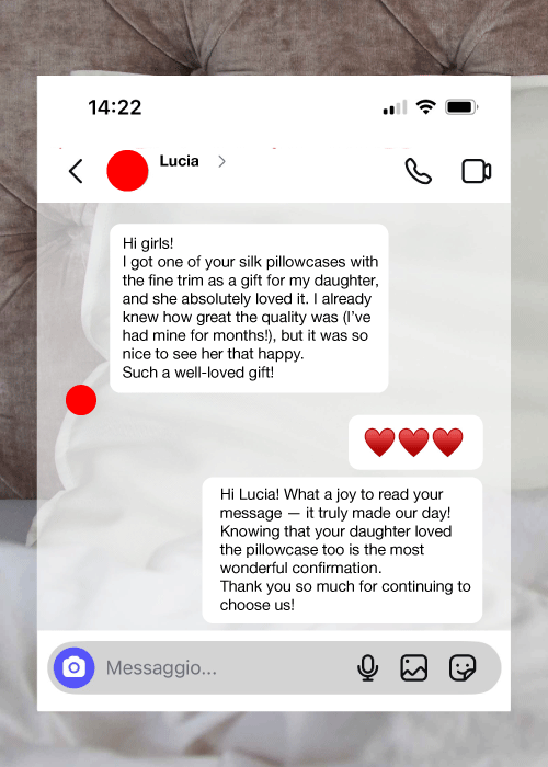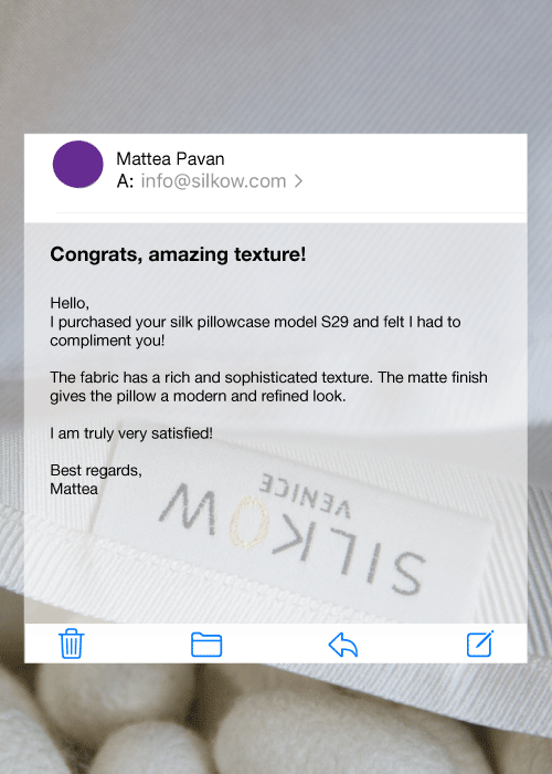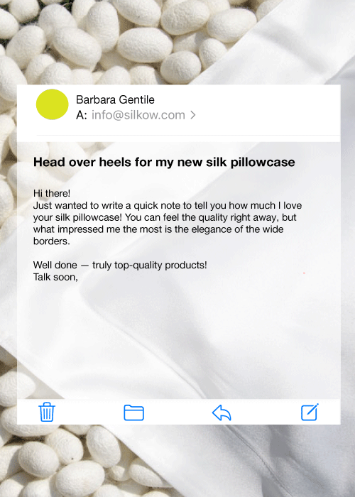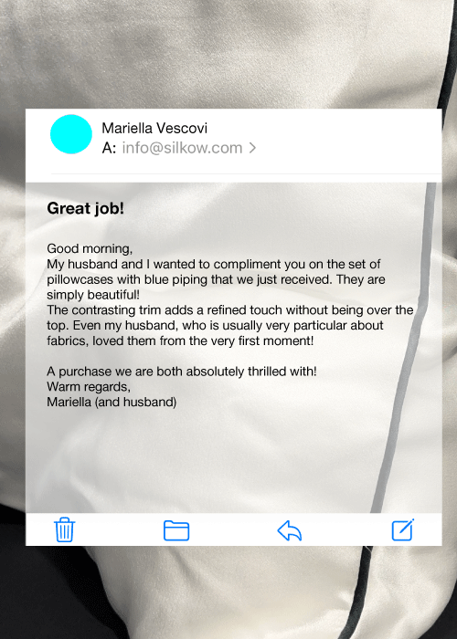 Our set of silk pillowcases also satisfies Mariella and her husband